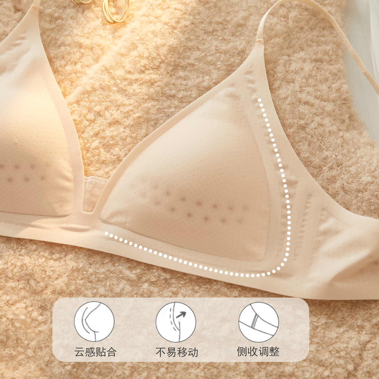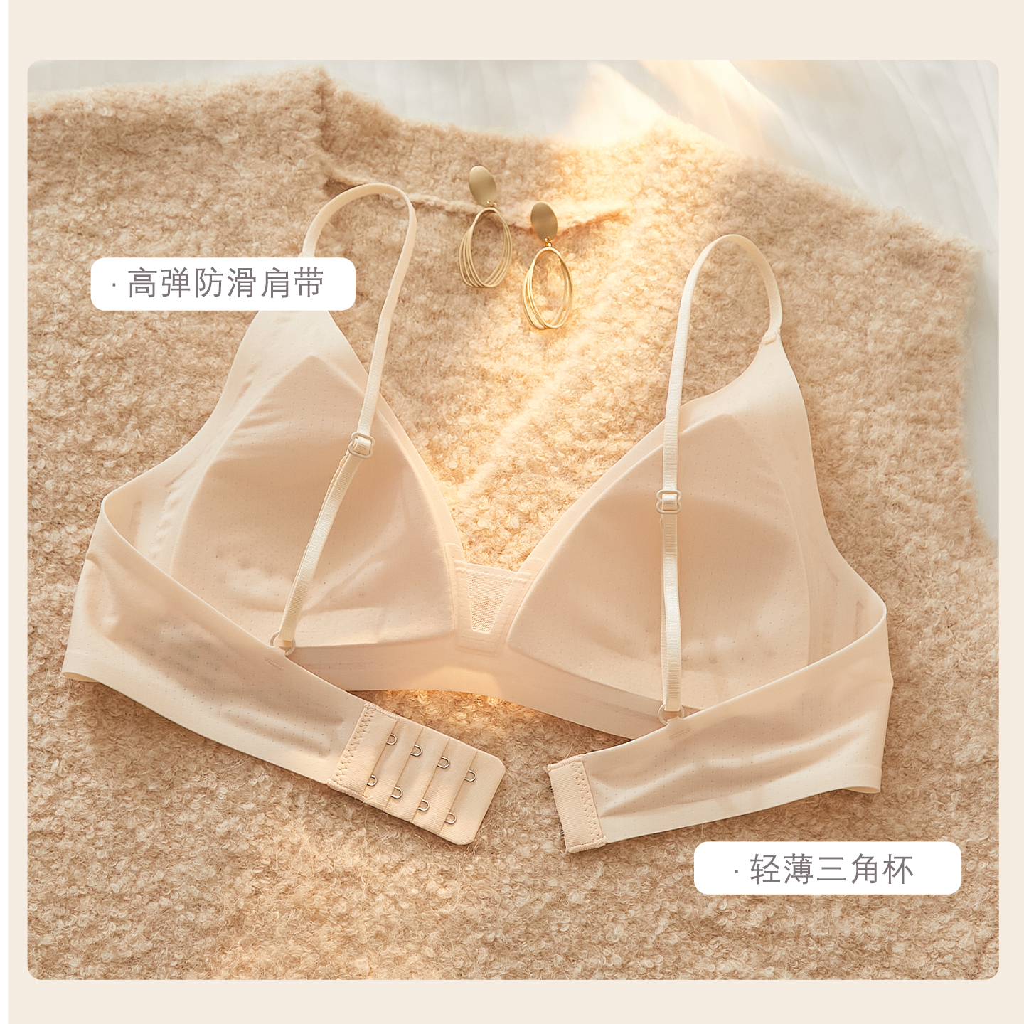 夏季 深V内衣女细肩带无痕三角杯聚拢小胸无钢圈文胸罩薄 丝滑法式