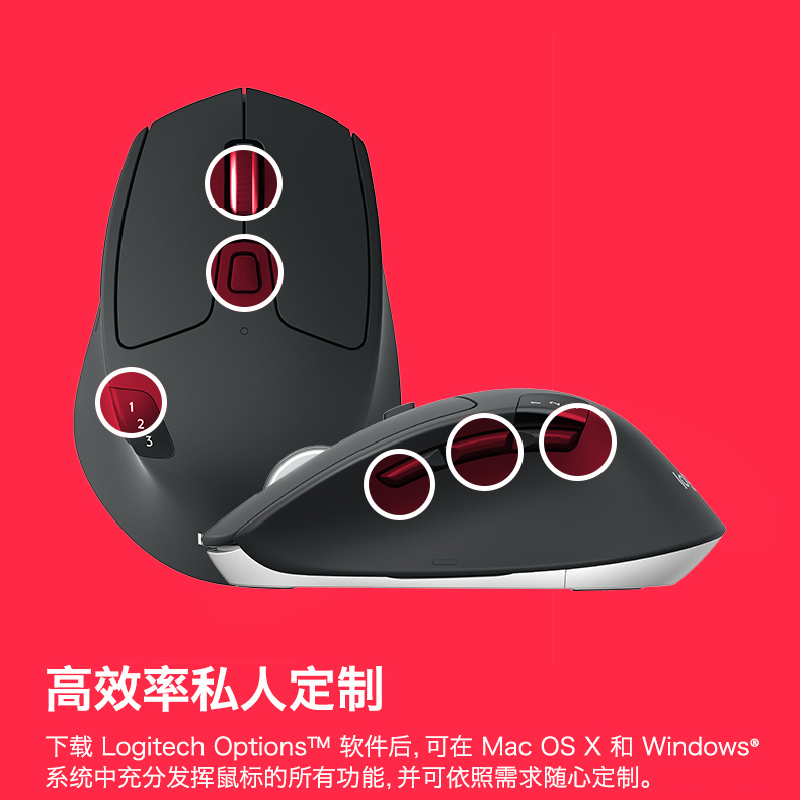 罗技M720无线鼠标蓝牙笔记本电脑商务办公家用女生男游戏便携省电