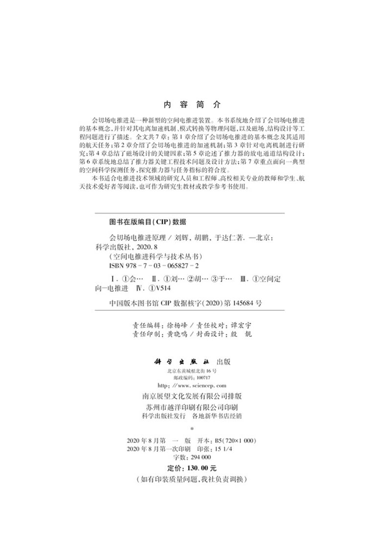 会切场电推进原理空间电推进科学与技术丛书刘辉胡鹏于达仁科学出版 社9787030658272