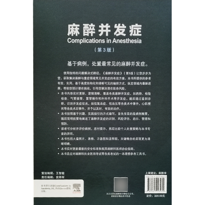 麻醉学书籍 社9787565923432 第3版 北京大学医学出版 麻醉科医师参考书工具书 麻醉并发症处理 薄禄龙 卞金俊 三版 麻醉并发症 正版
