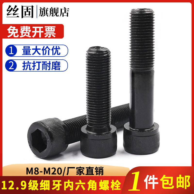 12.9级高强度细牙内六角螺丝螺栓圆柱螺钉M8M10M12 M20