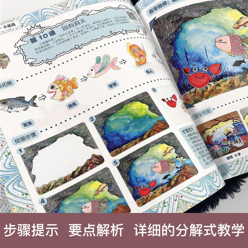 新书 饰画册河南美术出版 青藤少儿美术视频教程 青藤人著儿童手绘卡通画手工动物动漫场景美术绘画书水粉彩铅装 社 卡通篇 正版