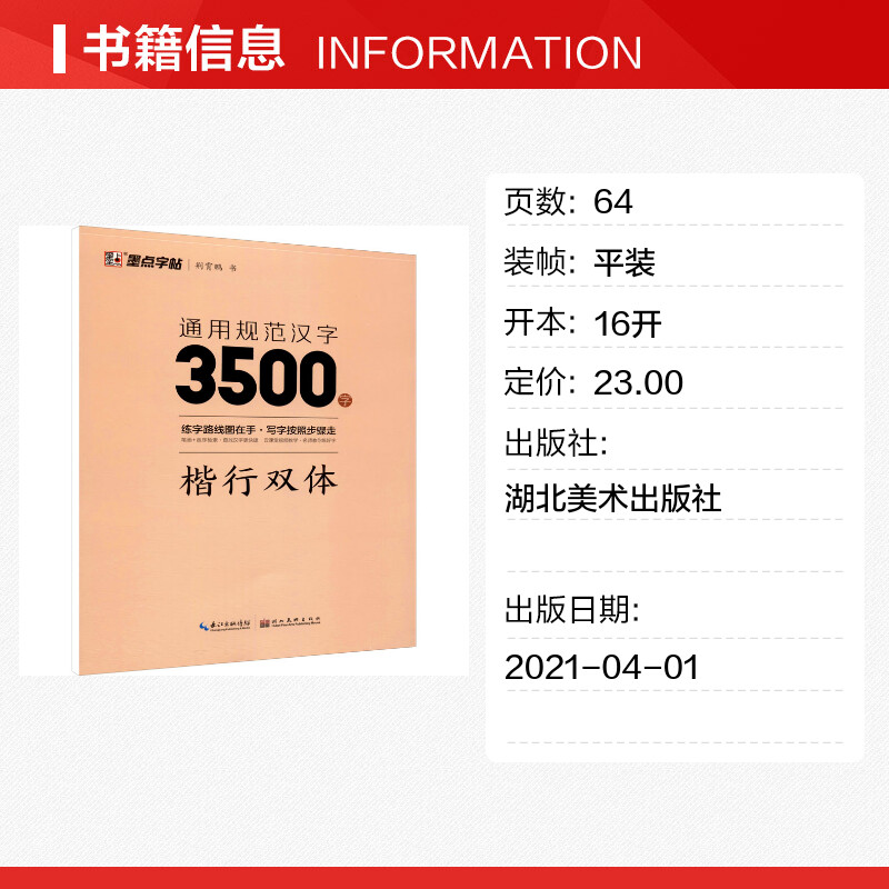 新华书店正版 通用规范汉字3500字 墨点字帖漂亮临摹练字男女初学者硬笔书法练字帖入门速成练字帖 荆霄鹏 图书籍湖北美术 楷行双体