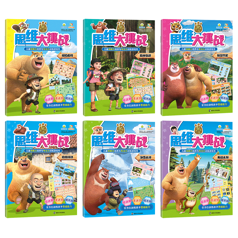 3至7岁幼儿童早教启蒙幼儿园亲子共读动画片故事书全大脑开发漫画书 儿童观察力培养与专注力训练游戏书 熊出没思维大挑战 共6册