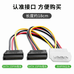 1分2硬盘电源线 大四芯pin转两串口固态线 ide公转双sata母转接线