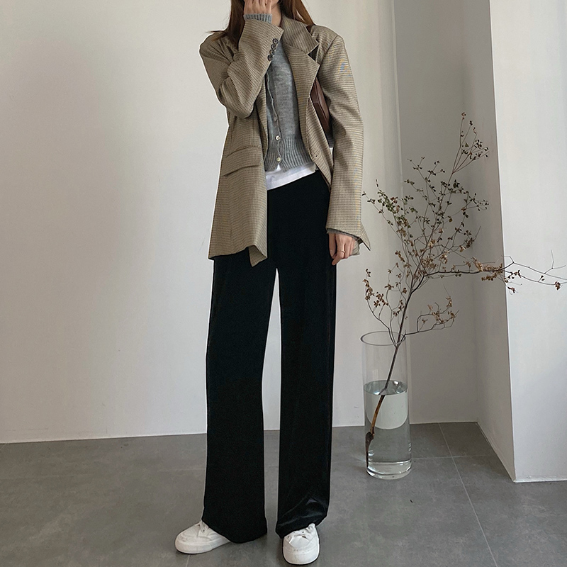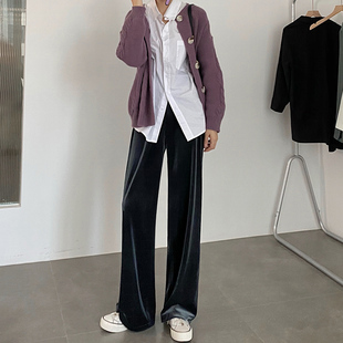 金丝绒阔腿裤 子女显瘦百搭秋冬加绒加厚宽松高腰休闲垂坠感拖地长