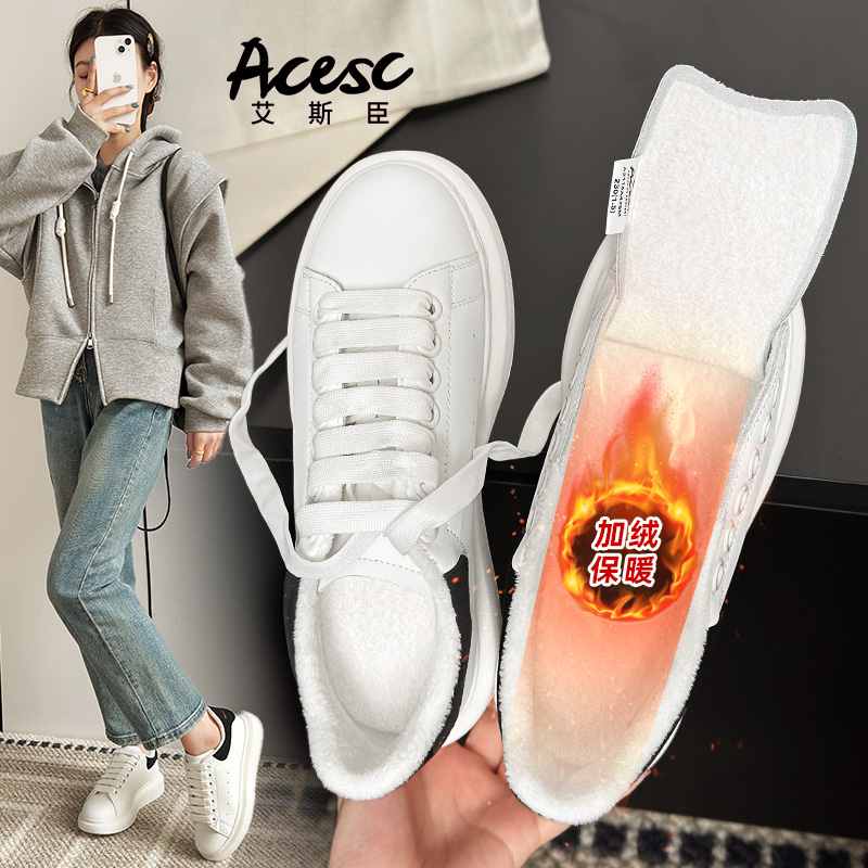 子 韩系内增高透气鞋 艾斯臣真皮小白鞋 加绒女厚底轻便增高百搭板鞋