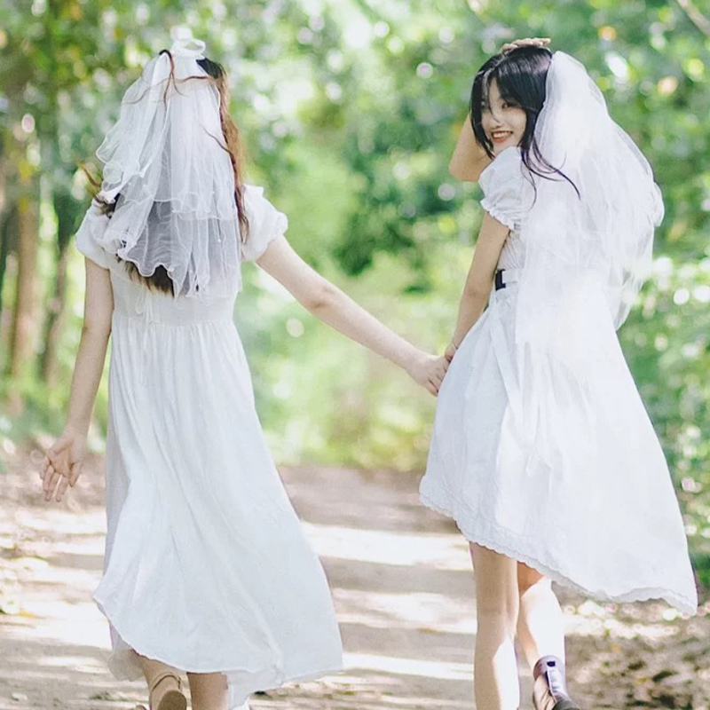 发光小头纱拍照道具带灯网红领证新娘结婚轻婚纱短款 女童头饰儿童