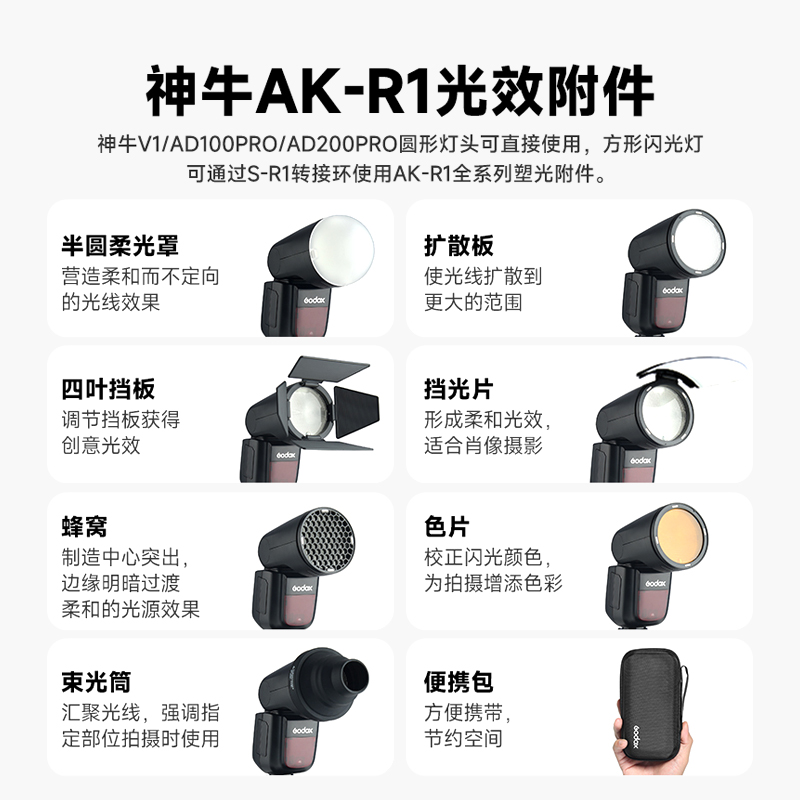 pro柔光球四叶反光板挡板色片蜂巢束光筒配件 100 godox神牛AK R1闪光灯配件V1外拍灯机顶圆形灯头附件ad200