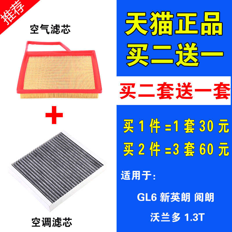 适用于别克全新英朗阅朗GL6科鲁泽沃兰多1.3T空气空调滤芯空滤格