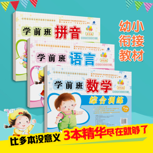 幼儿园阶梯数学2 幼小衔接整合教材全套3册 6岁学前教育启蒙思维早教图书籍 幼升小 学前班描红入学准备练习册 拼音语言识字