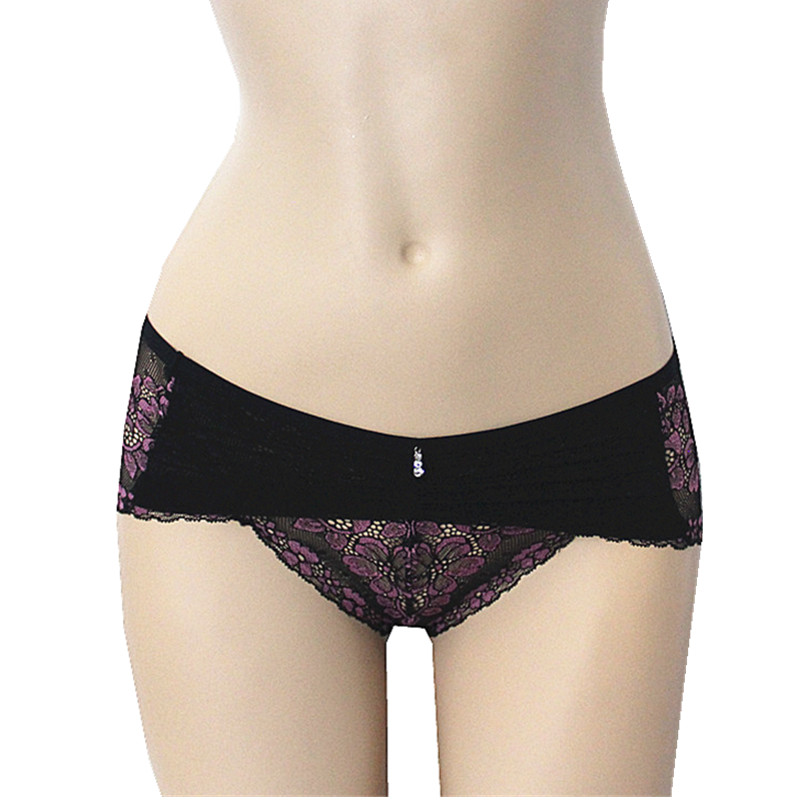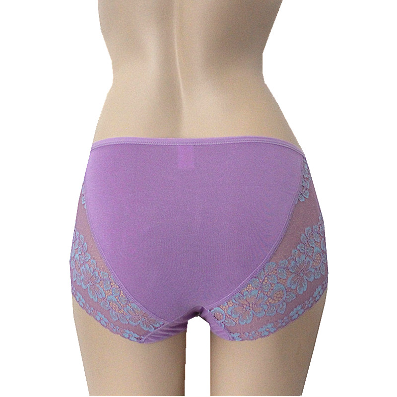 提臀舒适0116 女蕾丝中高腰抗菌弹力棉小平角裤 ab内衣 3条装