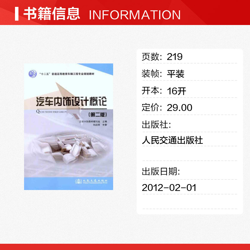 运输专业科技 社股份有限公司 泛亚内饰教材编写组 人民交通出版 图书籍 新华书店正版 交通 著 主编 第二版 汽车内饰设计概论