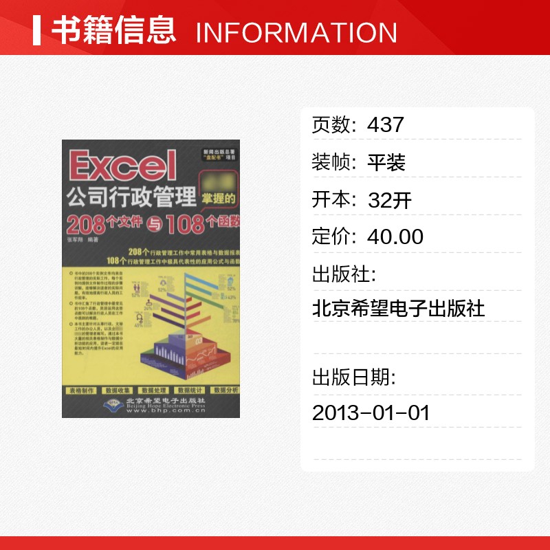 专业科技 社 张军翔 北京希望电子出版 图书籍 新华书店正版 新 操作系统 著 208个文件与108个函数 Excel公司行政管理必须掌握