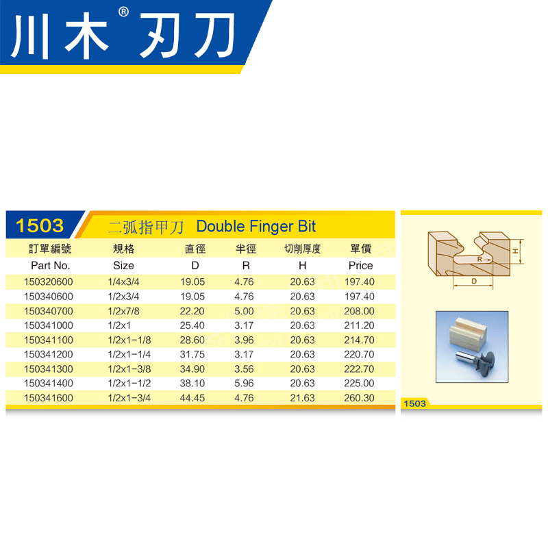 指甲状型线条刀类 二弧指甲刀1 木工专业刃具铣刀1503 川木