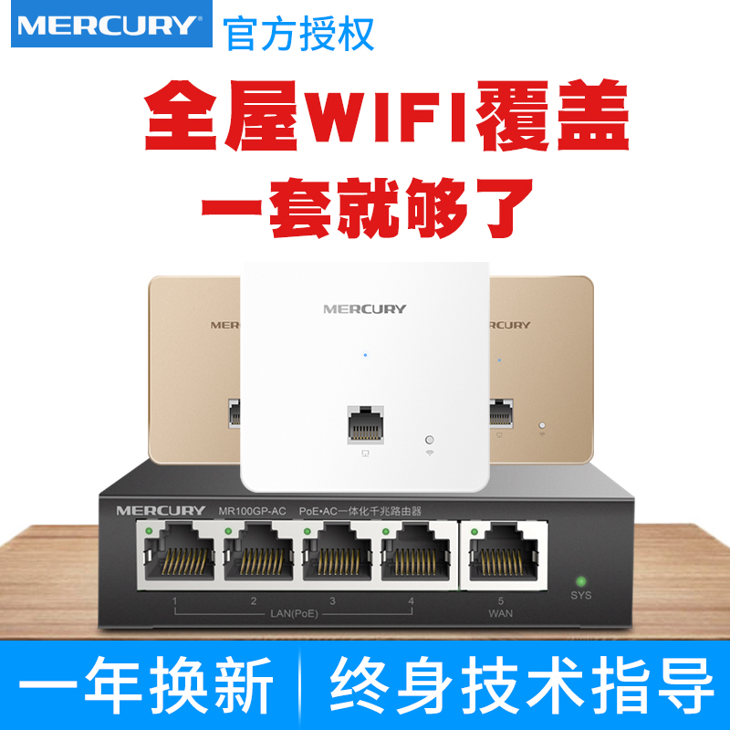 新品 新型家用小型企业酒店双网口86型全屋WIFI套装 AC一体化路由器入墙新款 水星无线AP面板千兆端口DC供电POE