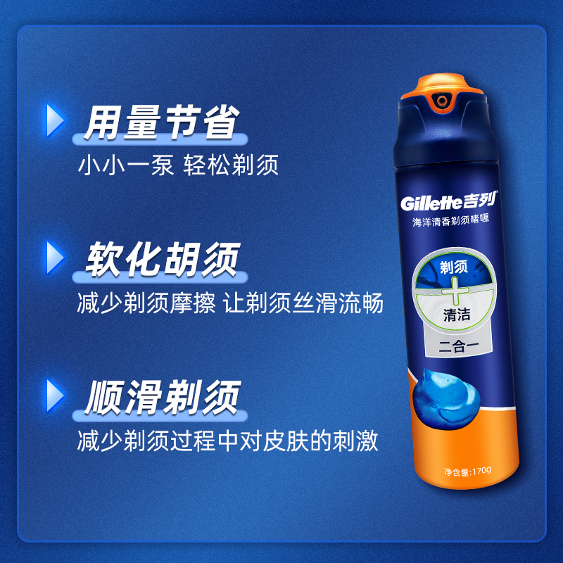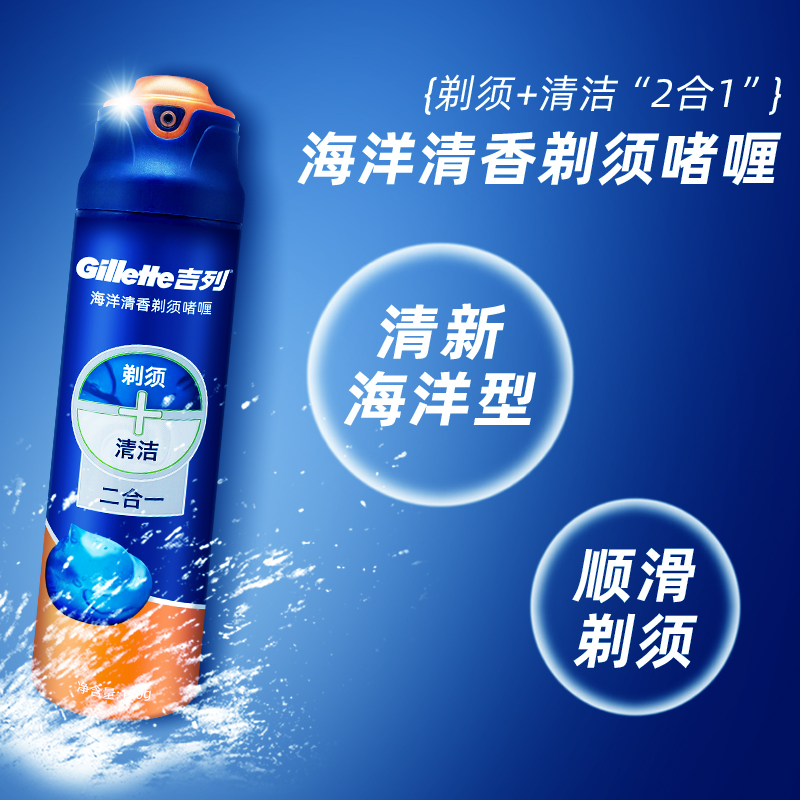 吉列锋隐致顺剃须啫喱海洋清新型男士 剃须刮胡泡沫二合一170g两瓶