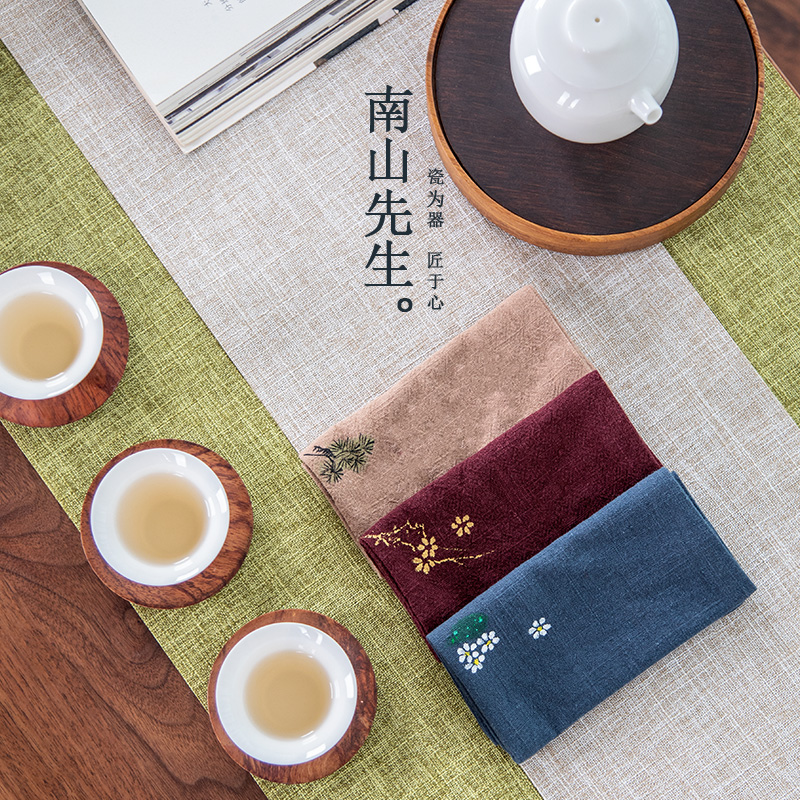 南山先生 功夫茶道配件 手绘棉麻茶巾吸水加厚茶布长形茶桌布中式