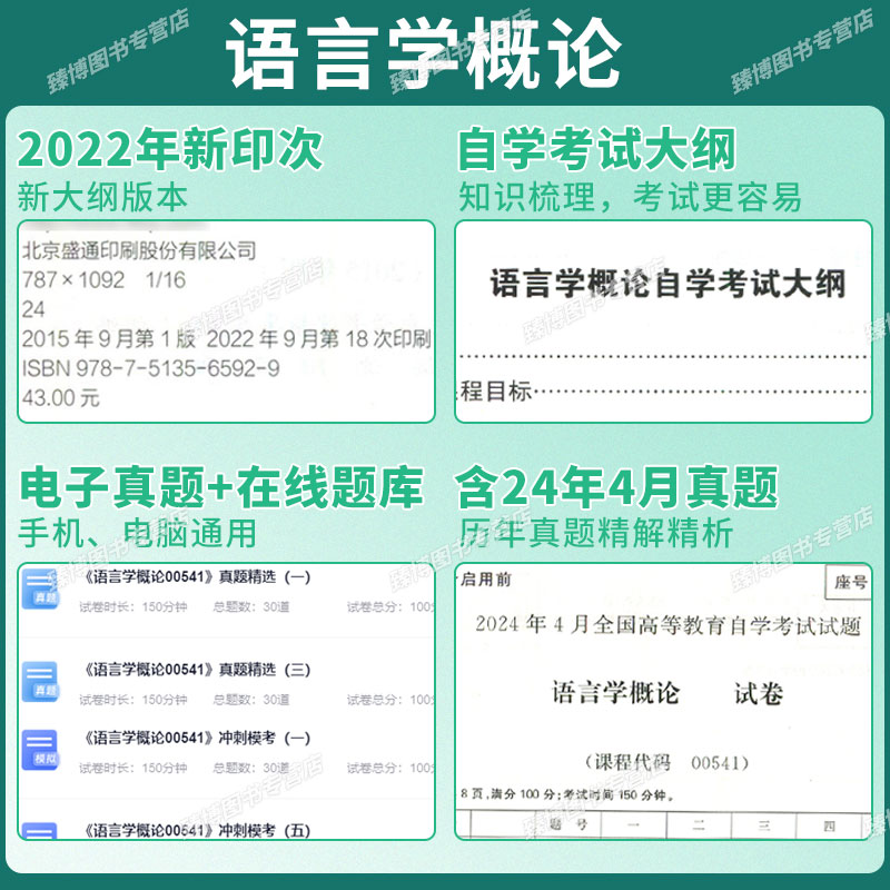 成人自考00541语言学概论自考教材附考试大纲沈阳2015版 社9787513565929自学考试试卷自考真题一考通题库2025 外语教学与研究出版