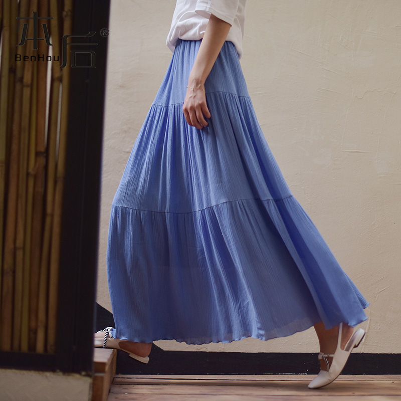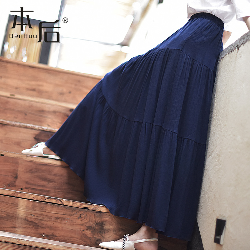 18577棉麻半身裙夏女文艺气质a字裙亚麻民族风大摆长裙休闲中长款