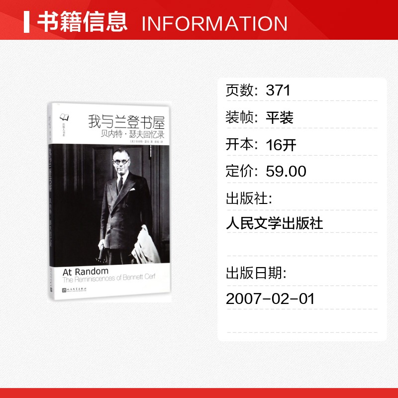 贝内特·瑟夫著;彭伦 译 著社会科学总论 我与兰登书屋 励志人民文学出版 美 学术经管 社 贝内特·瑟夫回忆录