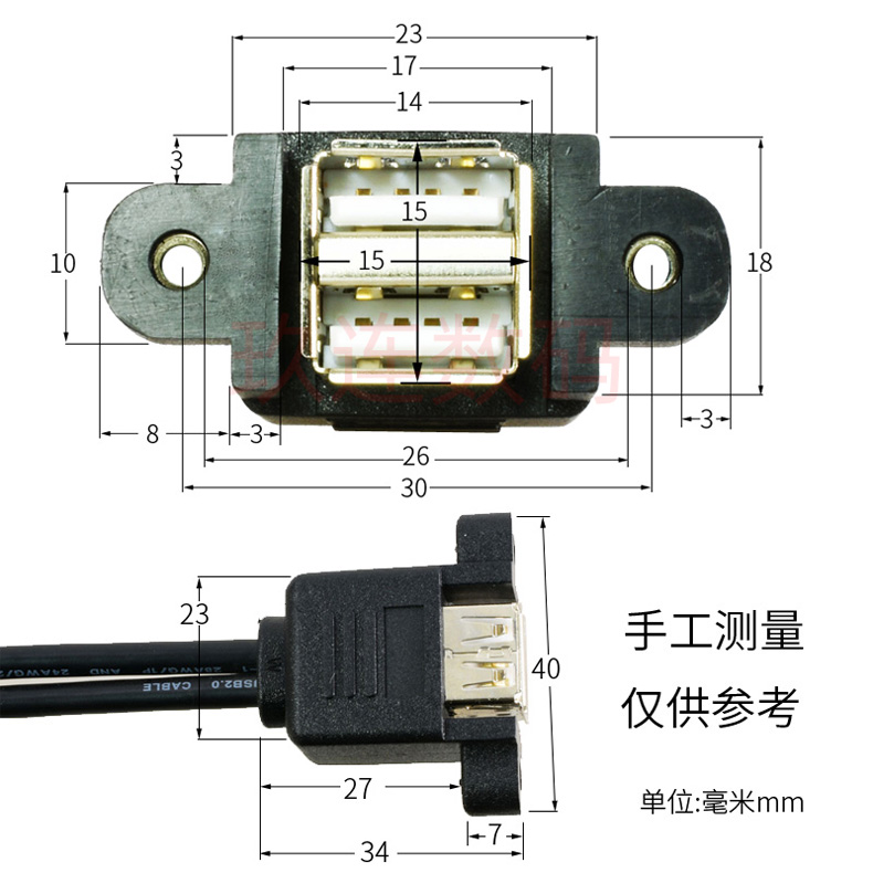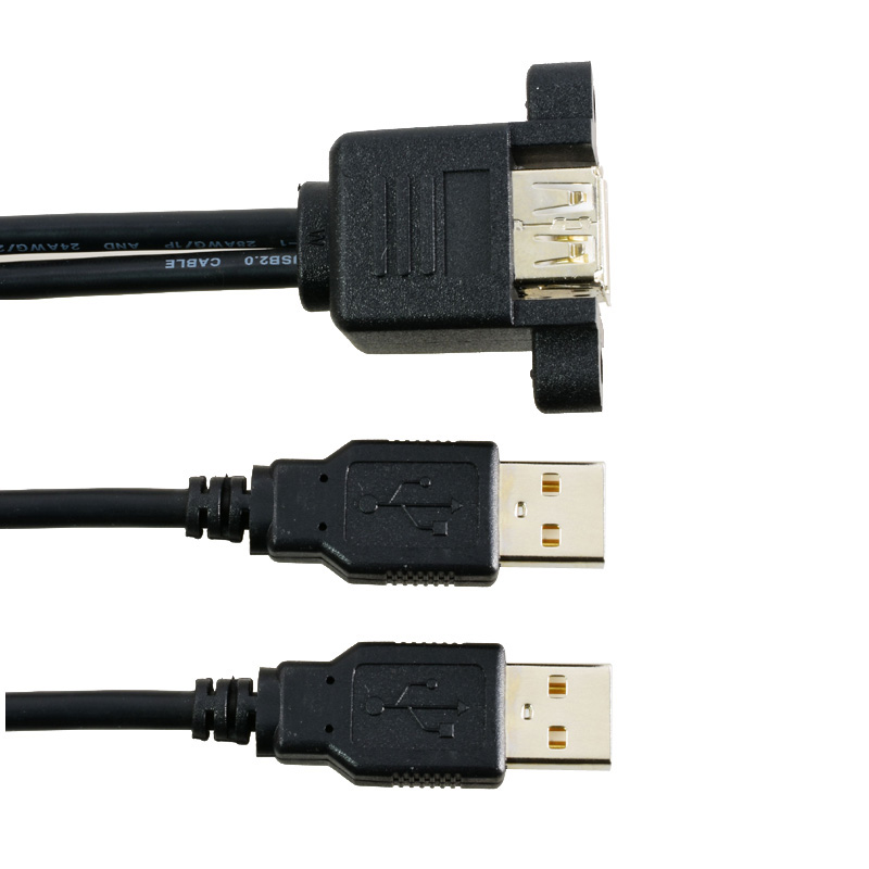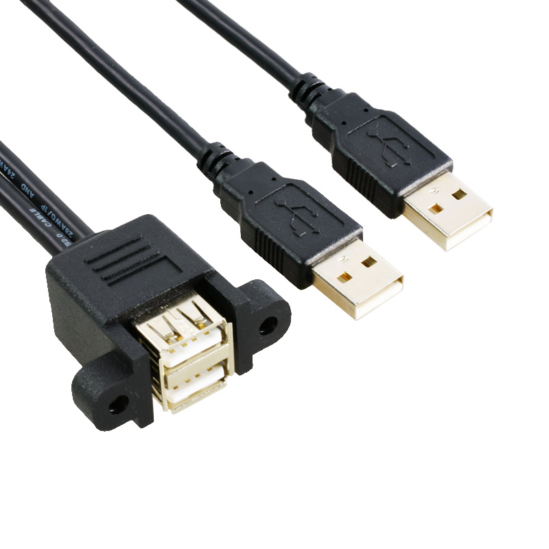 带螺丝孔双口USB档板线连体USB2.0延长线带耳朵可固定USB加长线硬盘高速双USB3.0公对母纯铜屏蔽充电线数据线