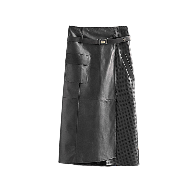 轻奢海宁真皮半身裙2025秋冬绵羊皮A字裙高腰开叉中长包臀裙皮裙