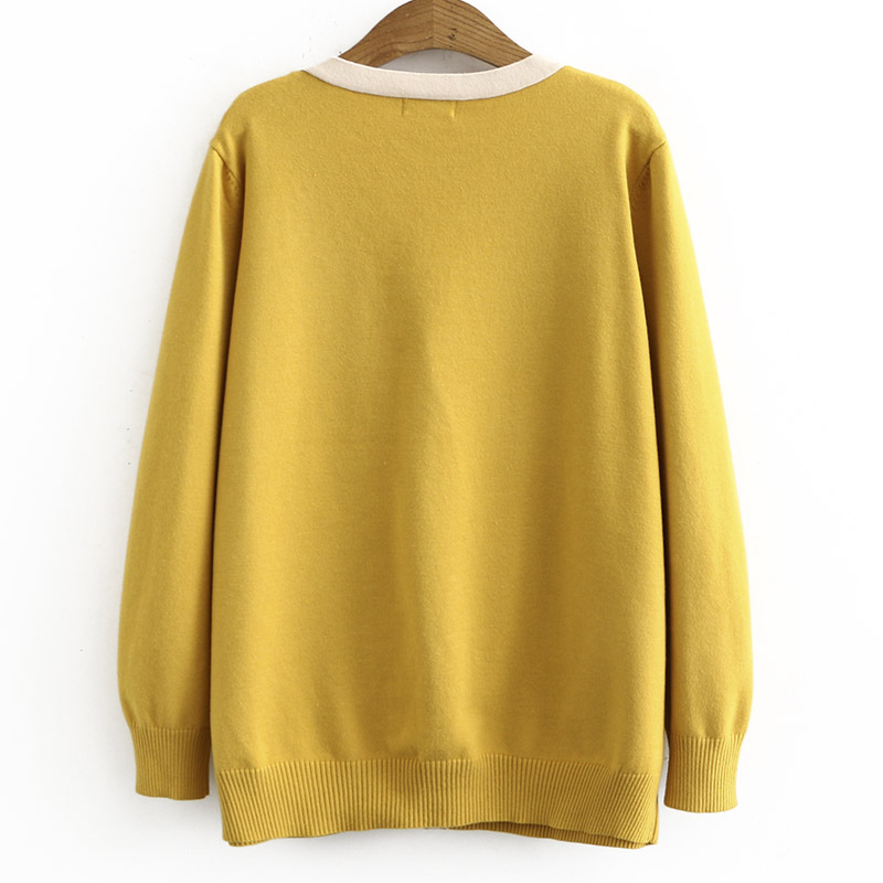 显瘦外套女秋秋v领慵懒风外搭毛衣 200斤胖mm撞色韩版 大码 针织开衫