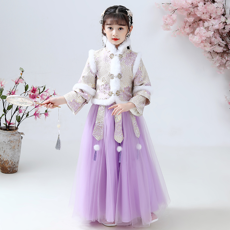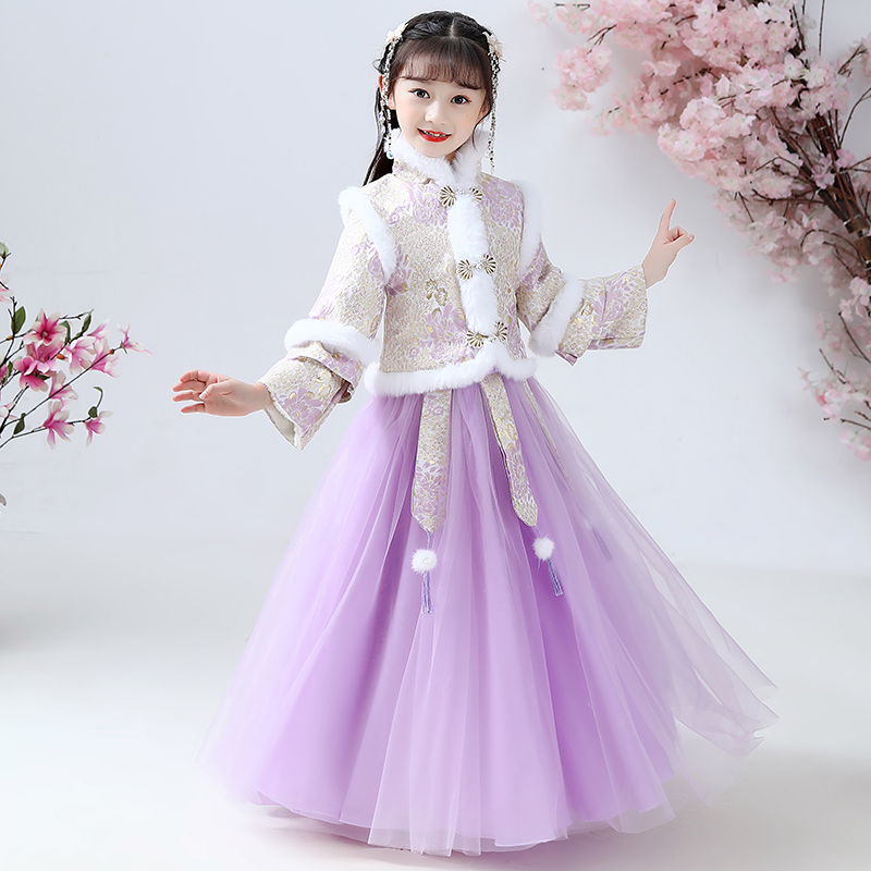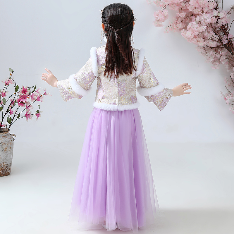 中国风儿童旗袍加厚秋冬款 汉服女童唐装 宝宝礼服裙小女孩洋气长袖
