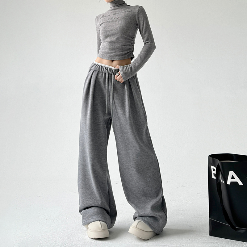 2025秋季 新款 运动拖地裤 垂感显瘦休闲裤 弯口袋糯米阔腿裤