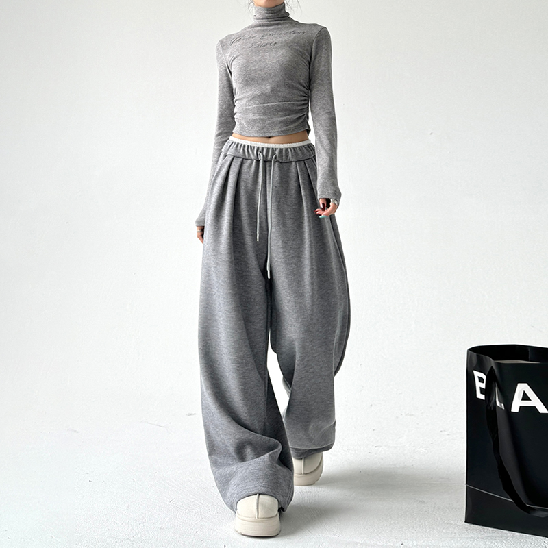 高级宽松bf慵懒垂感直筒加绒休闲阔腿裤 2025新款 子女春秋季 糯米裤