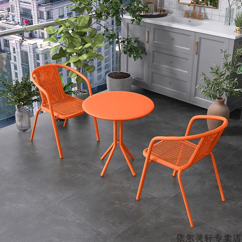 户外摆圆桌子简约白色休闲洽谈桌咖啡奶茶店餐桌北欧阳台小圆桌椅
