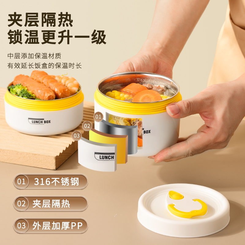 316L不锈钢保温饭盒学生迷你便当盒圆形密封汤罐上班族微波炉餐盒