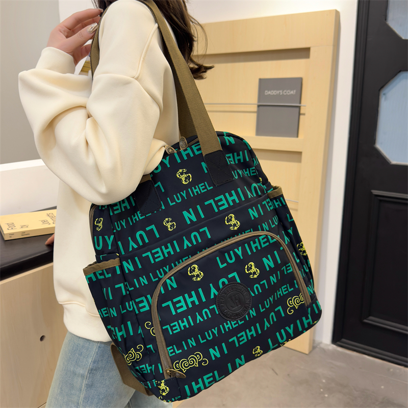 牛津布双肩背包女2024新款 轻便复古国风旅游帆布手提包托特包 时尚