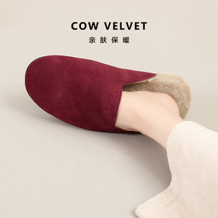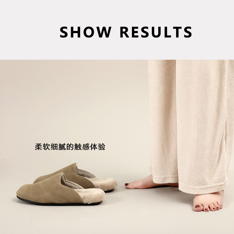网红明星勃肯轻奢家居牛绒毛绒拖鞋 女 情侣保暖外防滑地板穆勒拖鞋