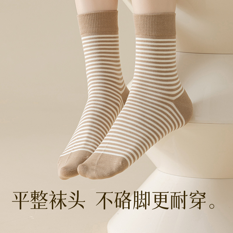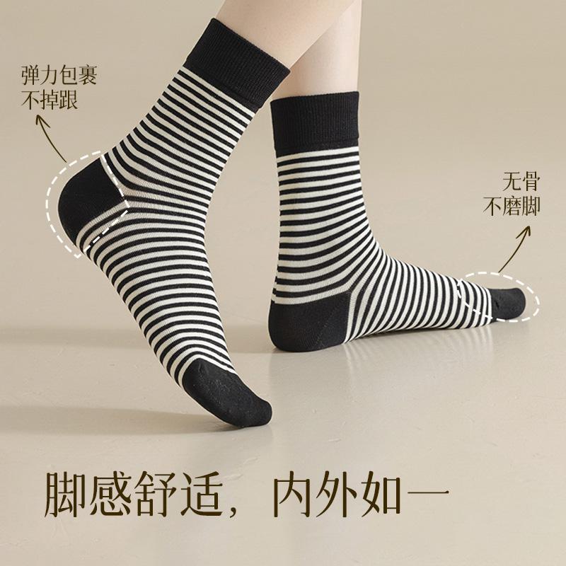 袜子女纯棉秋冬美拉德2024新爆款 抗菌防臭条纹无骨春秋中筒袜女士