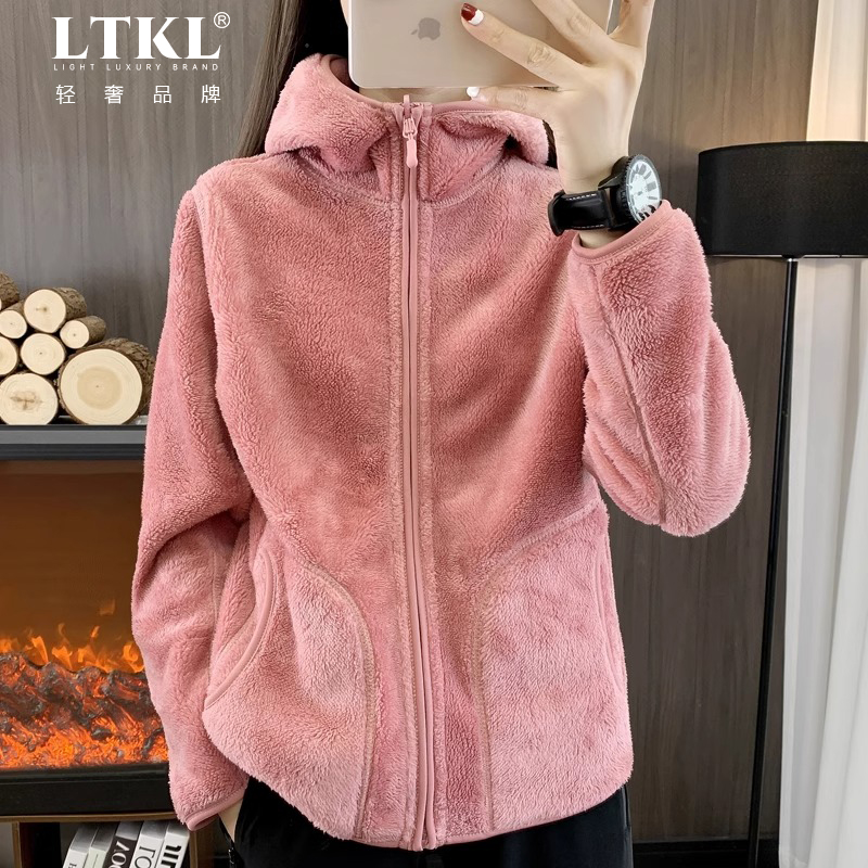 两面穿摇粒绒外套女连帽抓绒衣男加绒加厚内胆珊瑚绒休闲卫衣帽衫