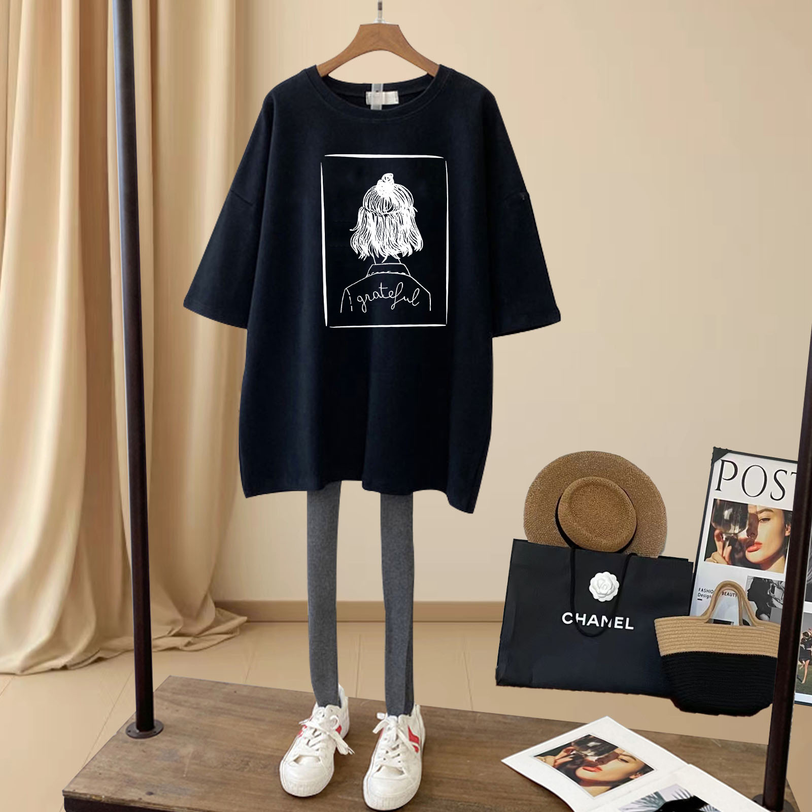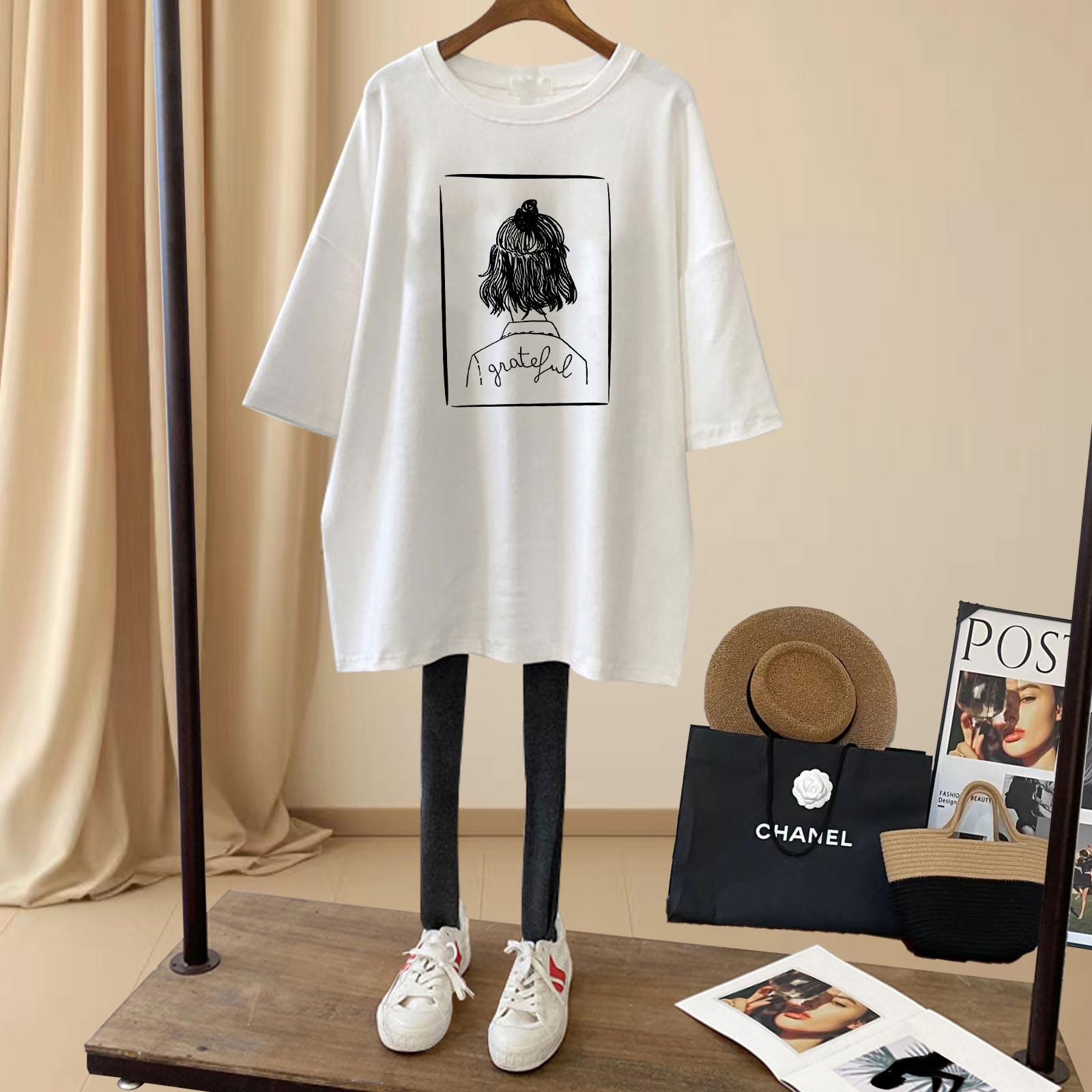 搭配鲨鱼裤 t恤女中长款 上衣加厚款 打底衫 新款 春夏秋冬季 磨毛短袖
