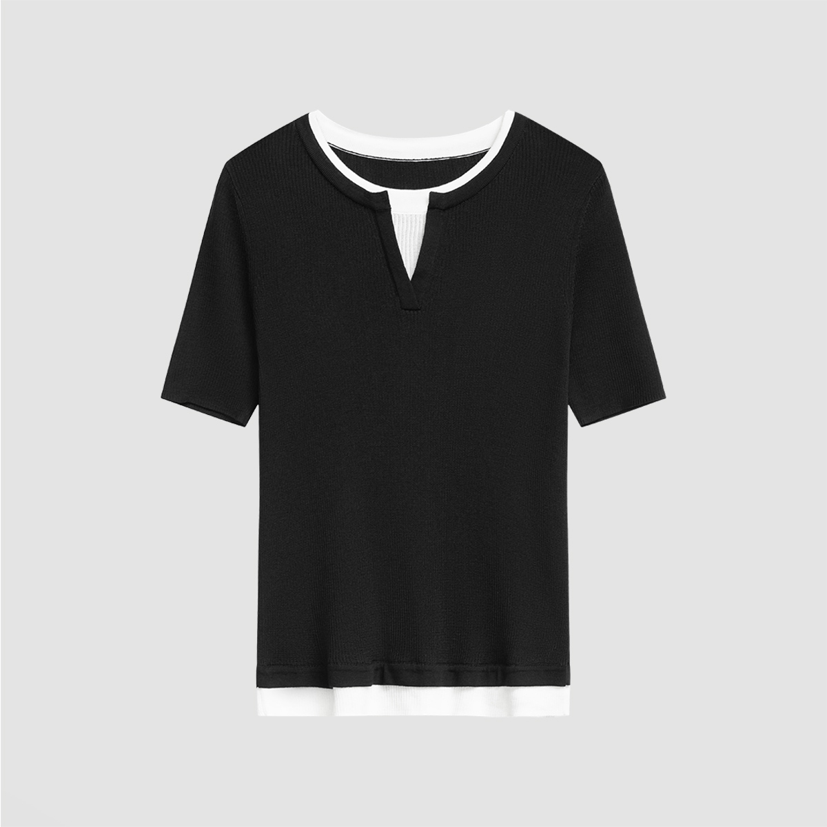 内搭上衣中袖 大码 毛衣女短袖 针织打底衫 t恤胖mm春秋 半高领五分袖