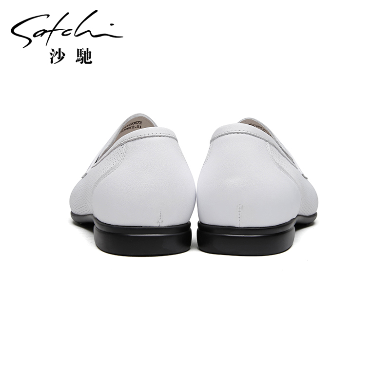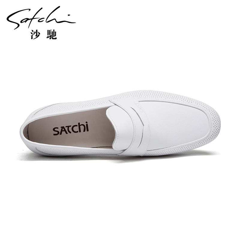 透气休闲皮鞋 夏季 真皮牛皮透气镂空一脚蹬乐福鞋 沙驰男鞋