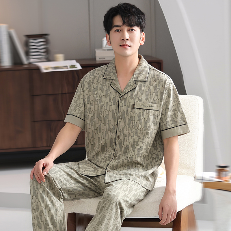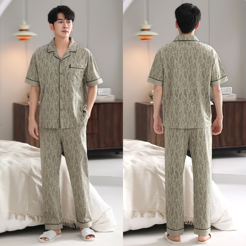 长裤 男款 夏天薄款 睡衣男士 夏款 纯棉短袖 中年爸爸加大码 家居服 夏季