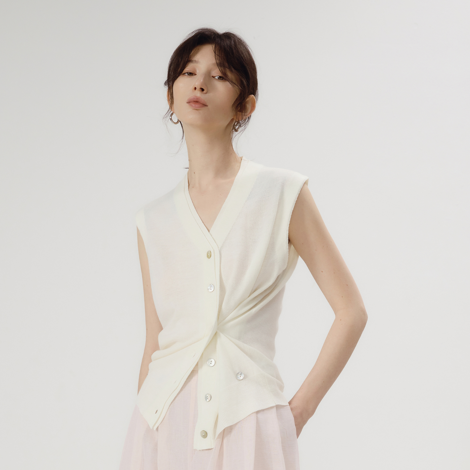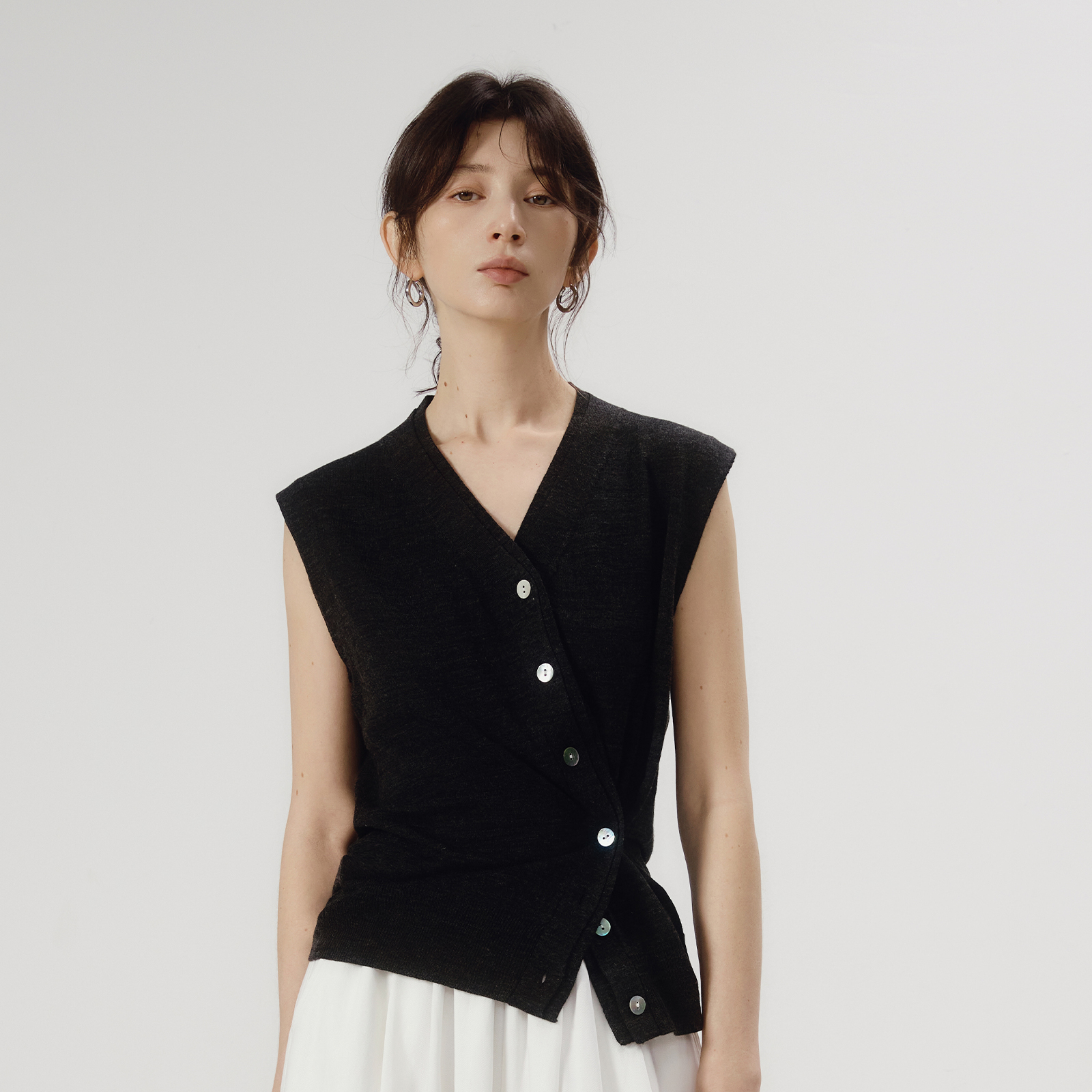 wana try不规则别扣针织马甲韩系简约气质感百搭马甲上衣女