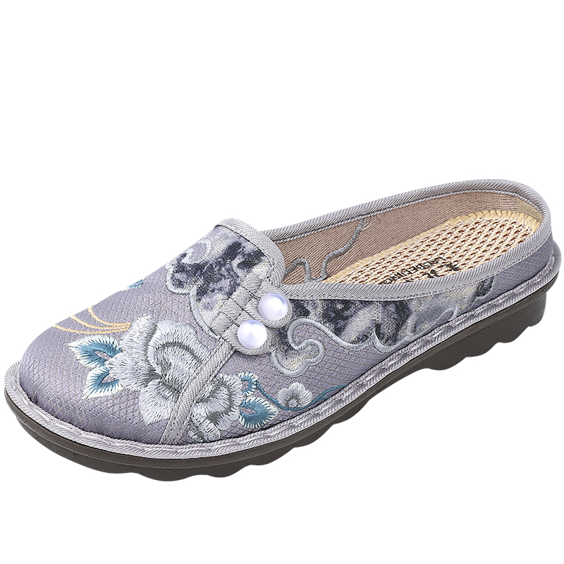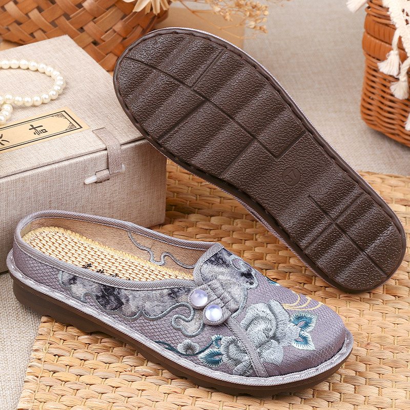 汉服民族风亚麻鞋 2024春夏季 女鞋 软底舒适老北京绣花布鞋 半包拖鞋