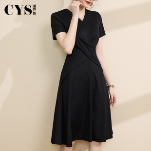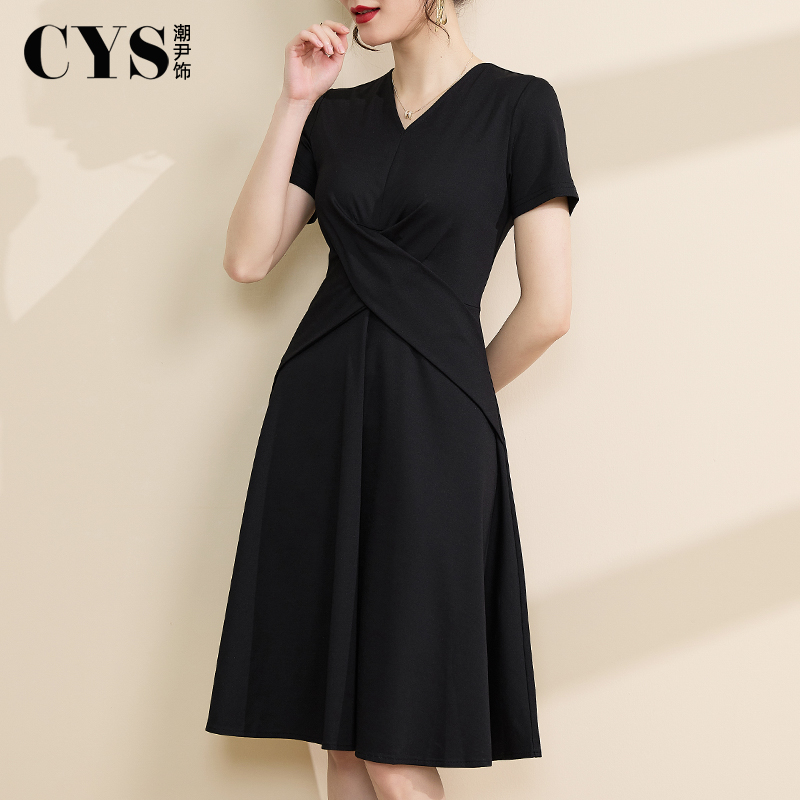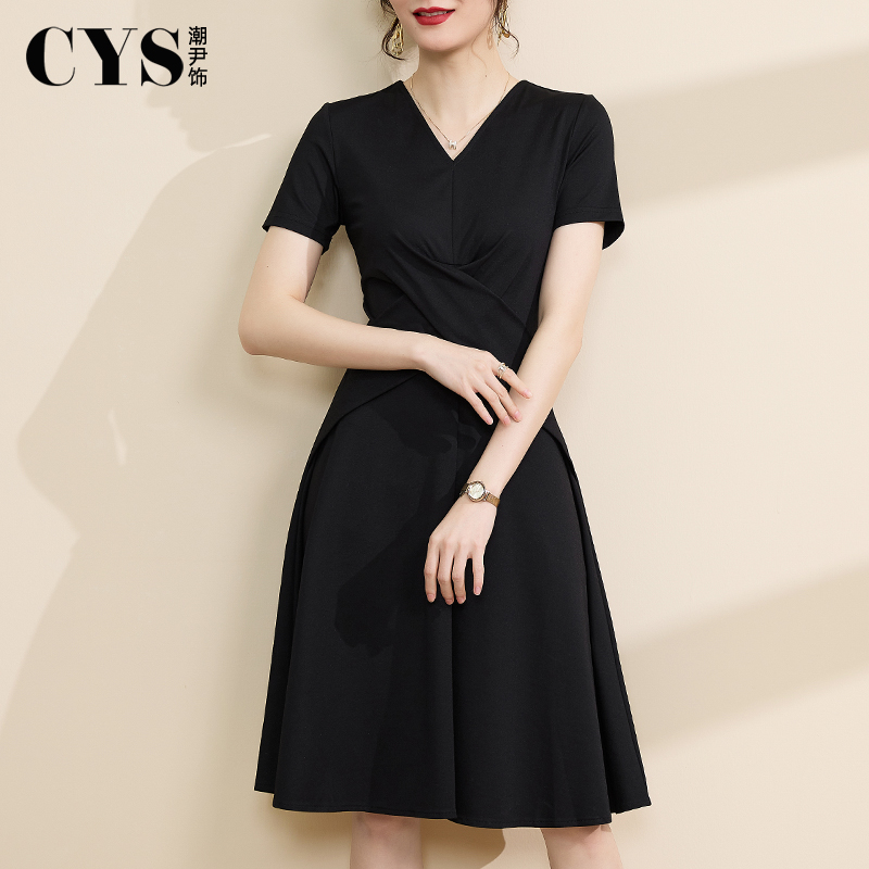 收腰绑带显瘦小黑裙 新款 高级感气质短袖 v领赫本风连衣裙2025夏季