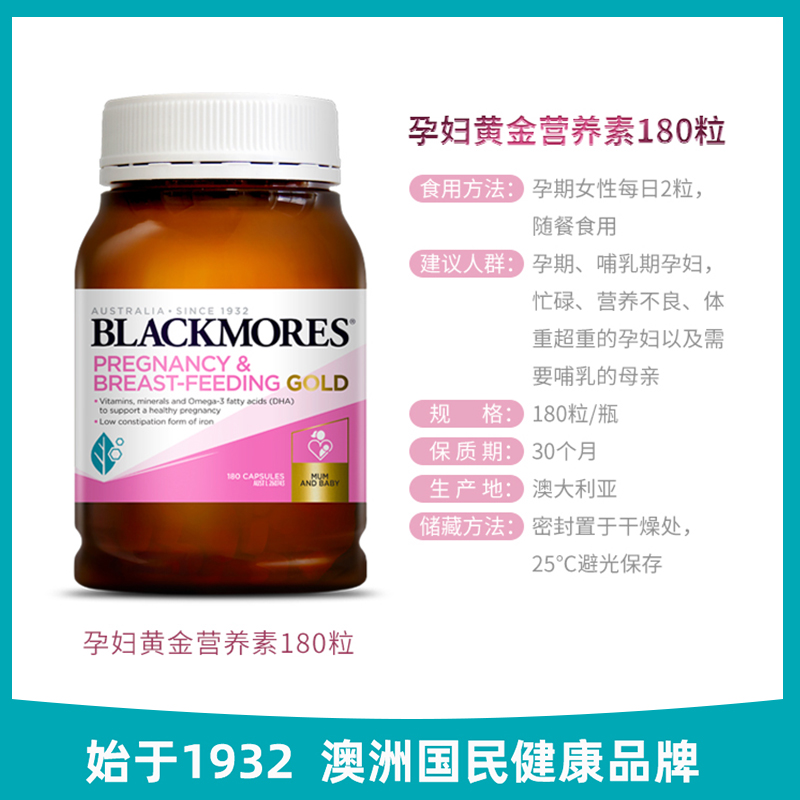 BLACKMORES澳佳宝孕妇黄金营养素180粒澳洲孕期叶酸DHA 自营