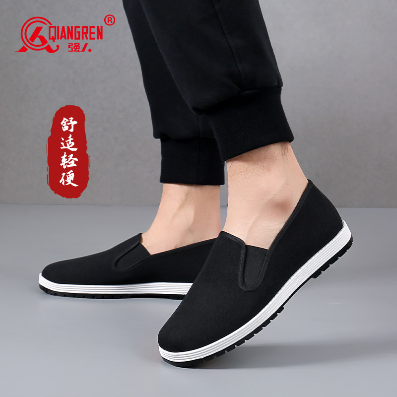 黑色开车透气软底工作鞋 强人3515男鞋 一脚蹬帆布鞋 男单鞋 北京布鞋