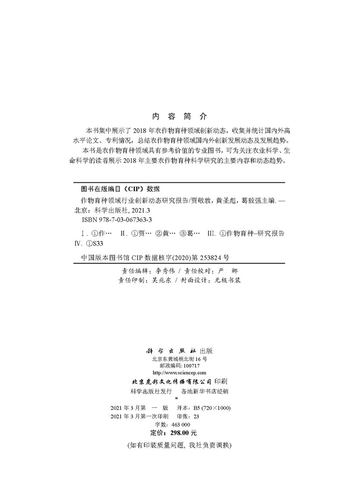 葛毅强科学出版 黄圣彪 社 贾敬敦 作物育种领域行业创新动态研究报告