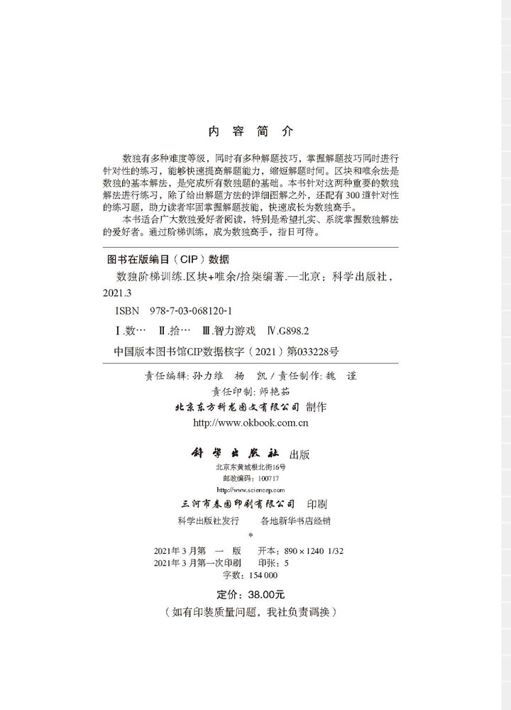 拾柒 编 科学出版 区块 社 解题技巧 唯余 道针对性练习题 数独阶梯训练 300