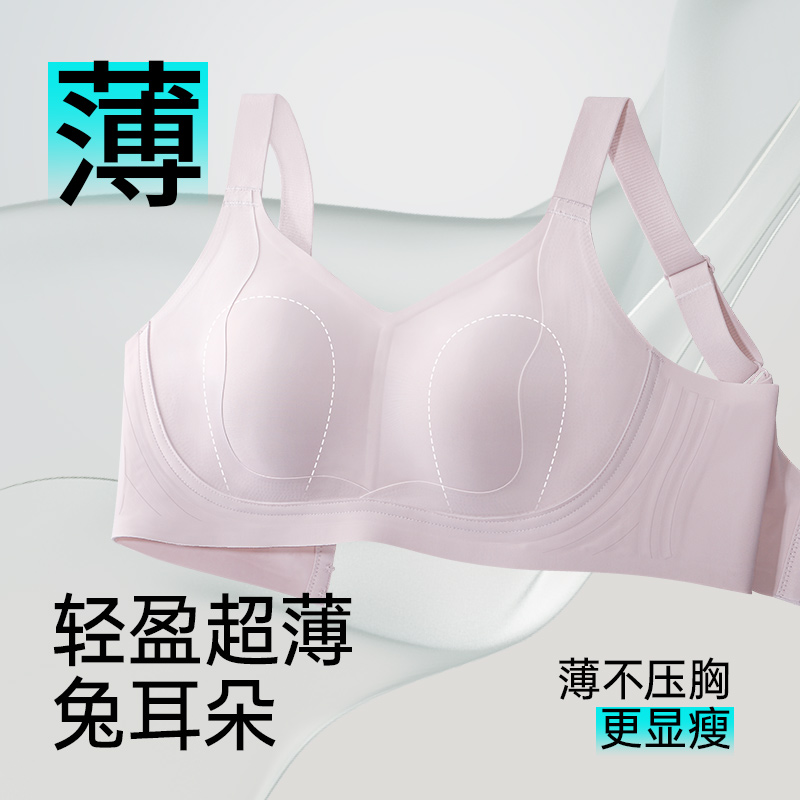 润微内衣女提拉防下垂薄款 舒适光面无痕大胸显小收副乳调整型文胸