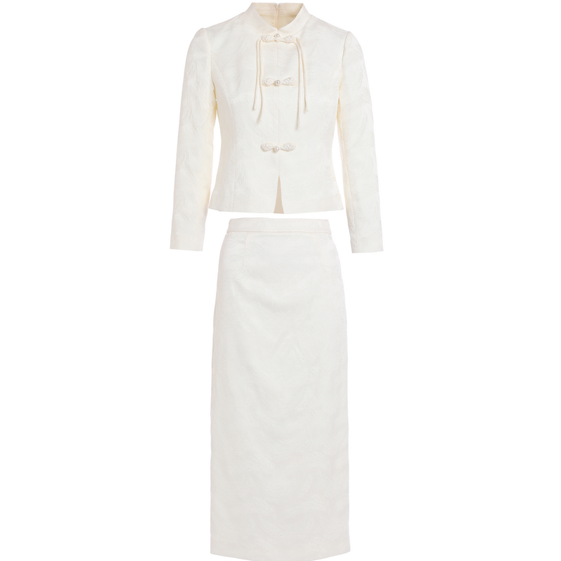 国风气质白色连衣裙半裙两件套 裙女春秋2025新款 高端新中式 套装